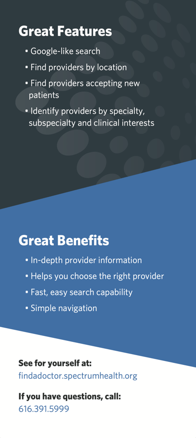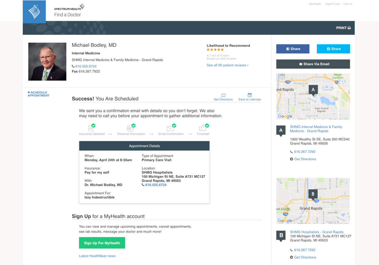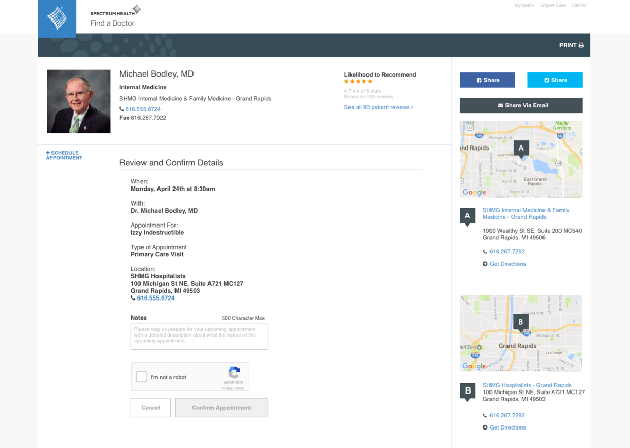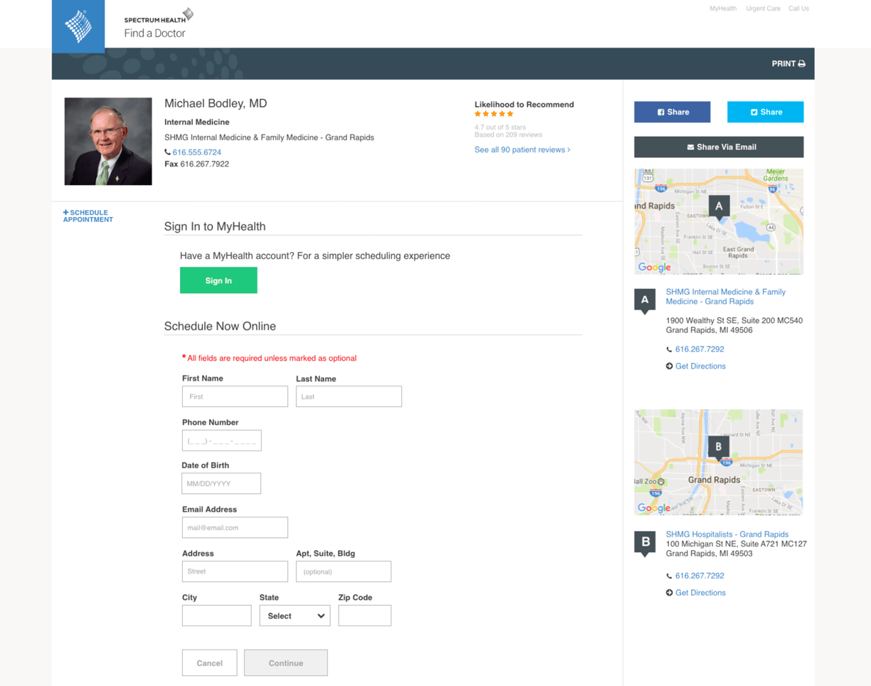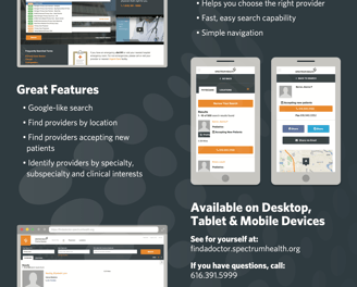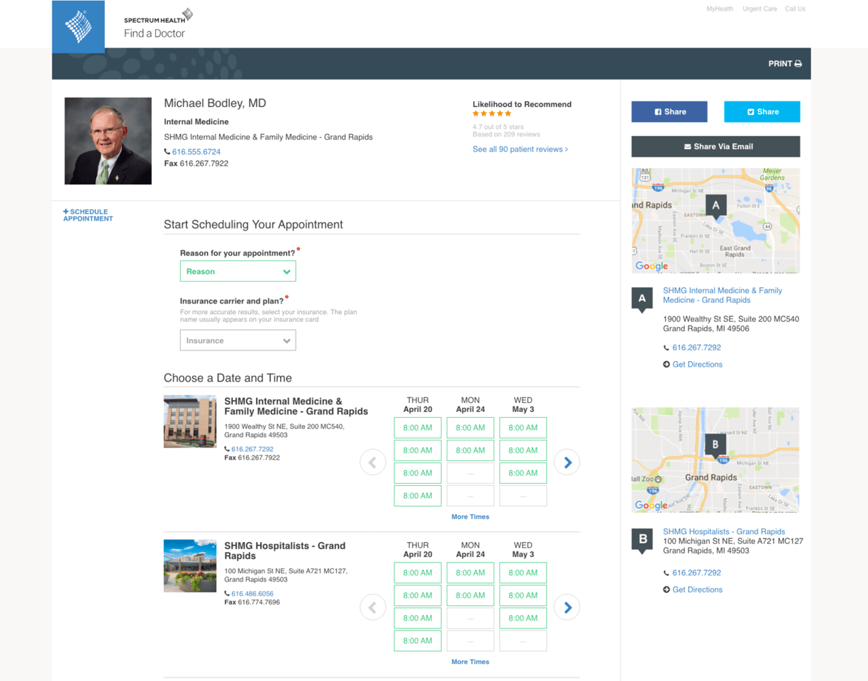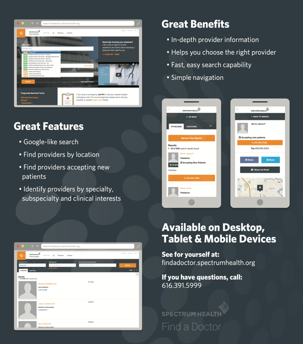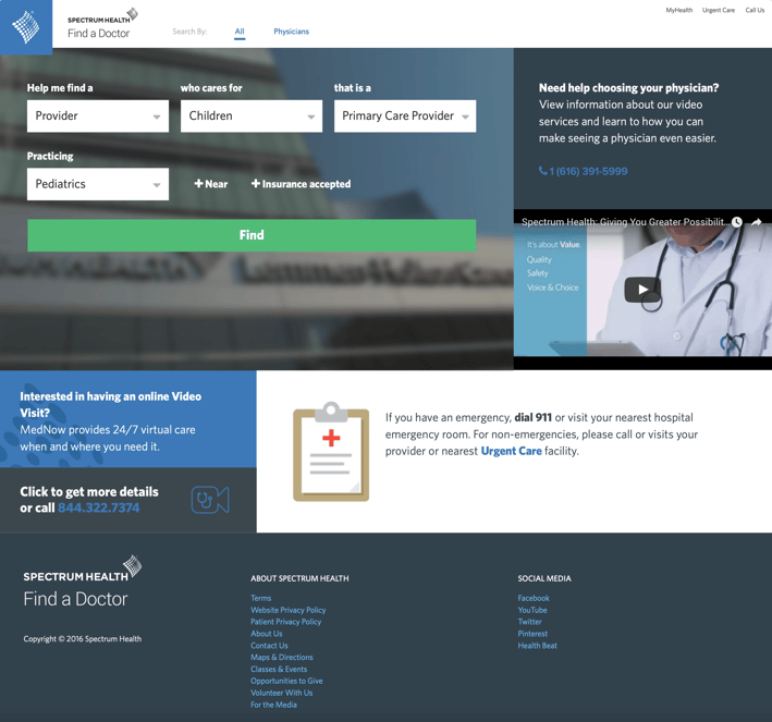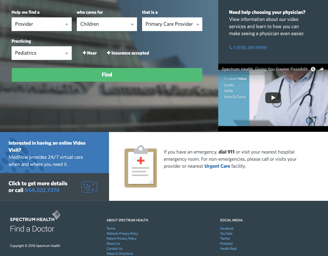 Spectrum health was in need of a new website that graded Doctors and clinics thus allowing patients to filter down and find a new physician taking their insurance, was close by in proximity to them, was well regarded/graded, and was accepting new patients with real time up to date information. This also included address, user reviews, phone numbers and other communication methods.